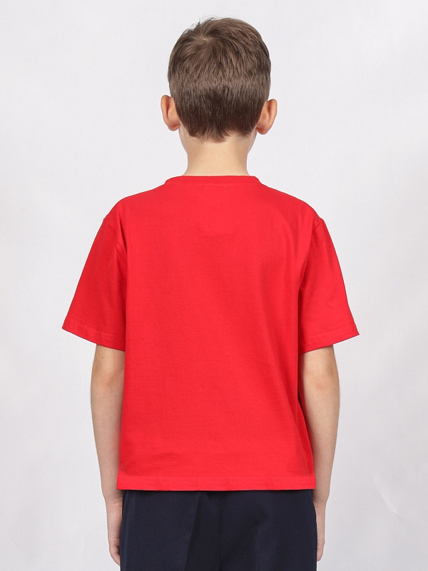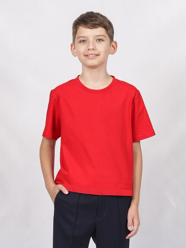 Изготовлена из однотонного трикотажного полотна красного цвета.